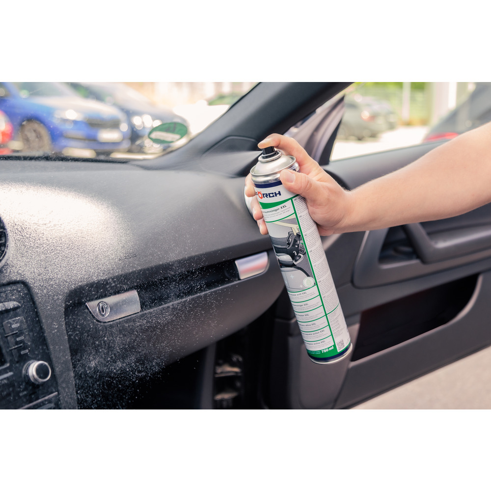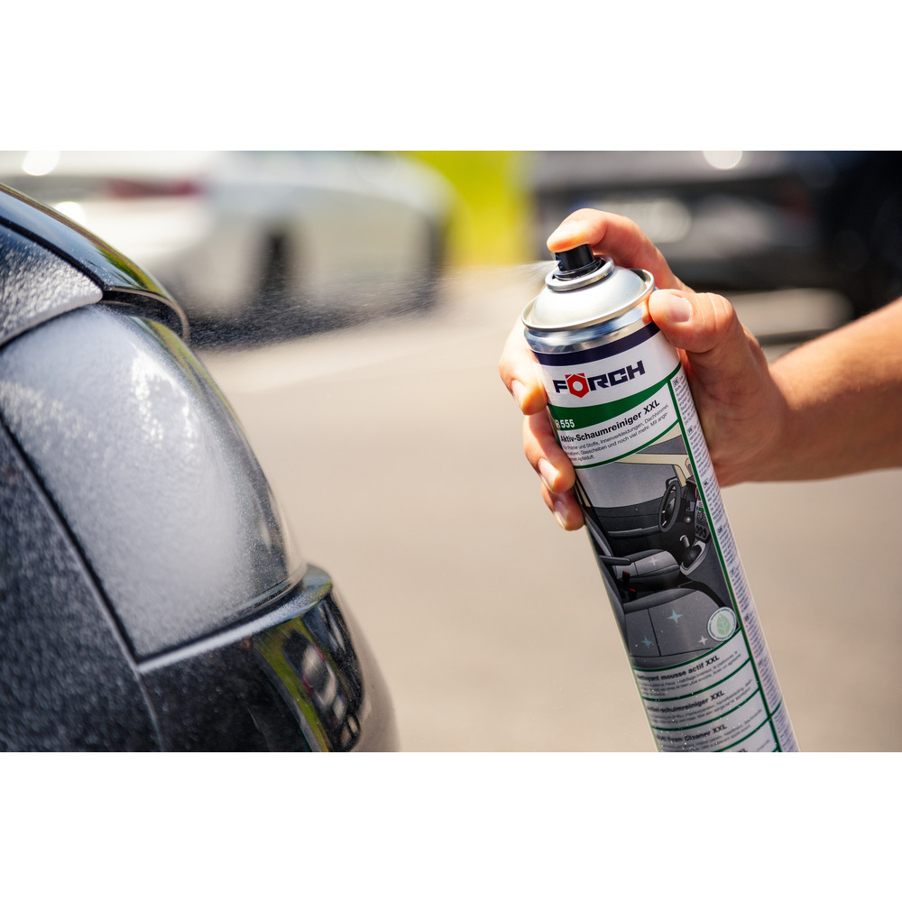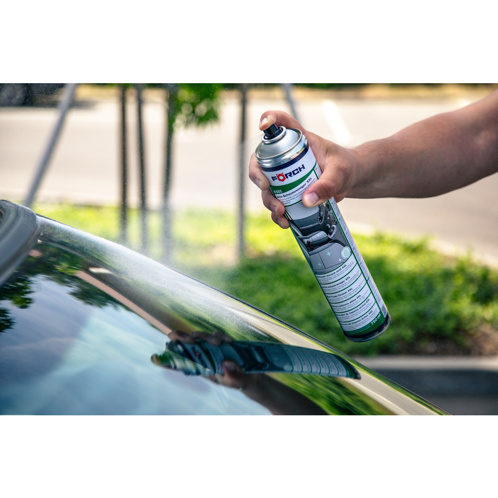 • Rovnomerne naneste aktívnu čistiacu penu XXL na čalúnenie, textílie, interiérové obloženie, strešný podhľad, armatúry, lakované a plastové diely a sklenené plochy a nechajte pôsobiť