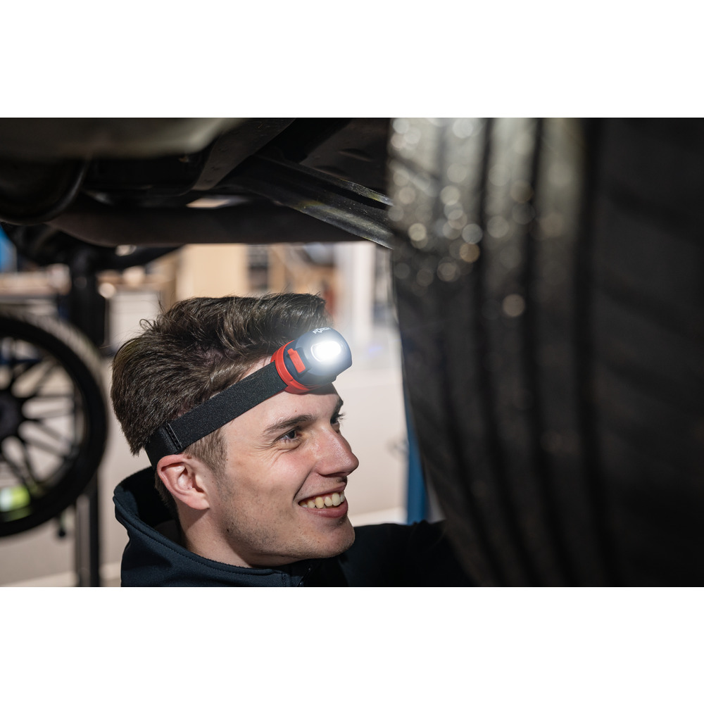 • svietidlo optimálne sedí vďaka elastickému, nastaviteľnému a protišmykovému hlavovému pásiku