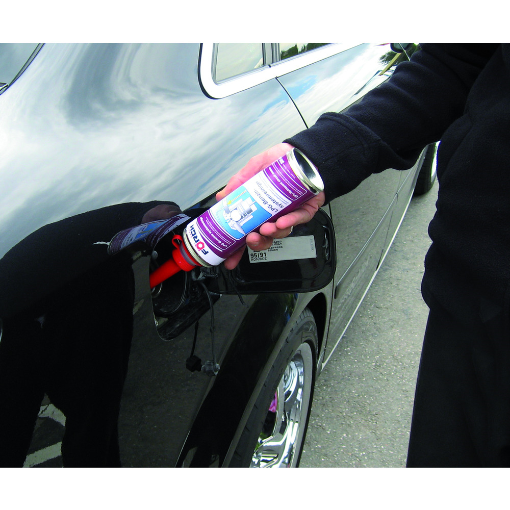 • čistiaci prostriedok sa pridáva do benzínovej nádrže bivalentných vozidiel (poháňaných plynom/benzínom). Do palivového systému ho pridávajte pred tankovaním pravidelne každé 3 až 4 mesiace alebo každých 10 000 km. Vystačí až na 80 l paliva.