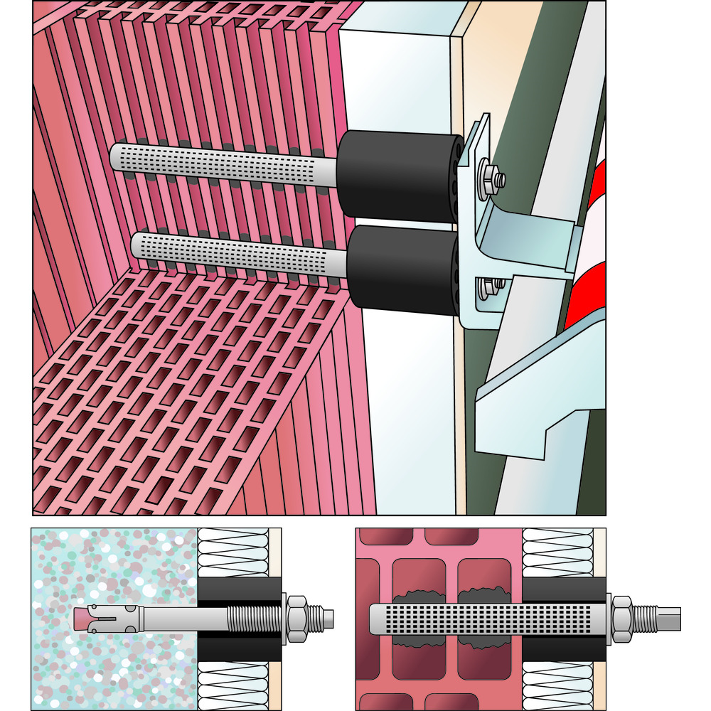 • použiteľné s injektážnou maltou FÖRCH, svorníkovými/ťažko zaťažiťelnými alebo fasádnymi hmoždinkami/kotvami atď.