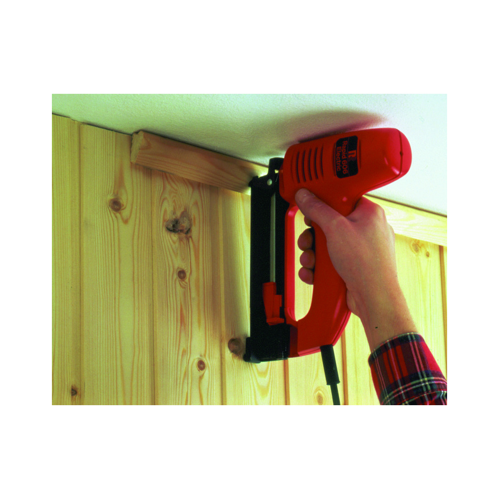 • na upevňovanie stropných obkladov, drevených profilov, tvrdého dreva, lisovaných drevovláknitých dosiek a líšt; 10-násobná statická bezpečnosť pri upevňovaní stropných obkladov a drevených profilov sa dosahuje nastrelením sponky typu 606 minimálne 20 mm do vnútornej konštrukcie