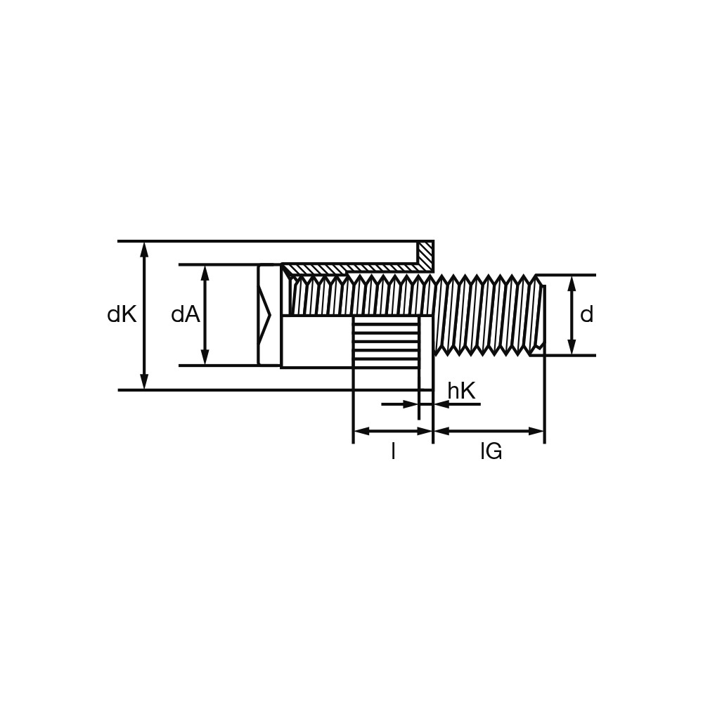 Skrutka na slepé nitovanie, s plochou hl., pozink. oc.