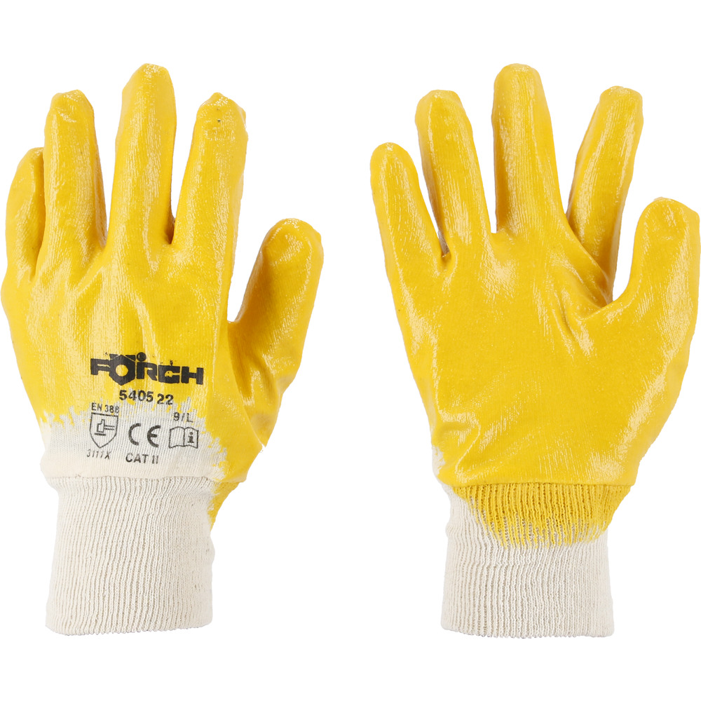 Nitrilové rukavice, žluté, částečně povlakované