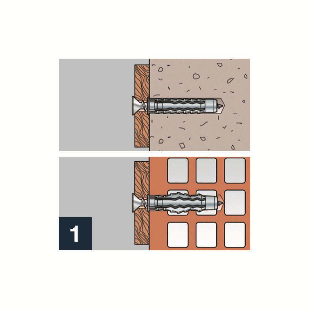 • 4-násobná expanzia zaručuje maximálnu stabilitu (obr. 1 + 2) v betóne a všetkých stavebných materiáloch pre murivo.