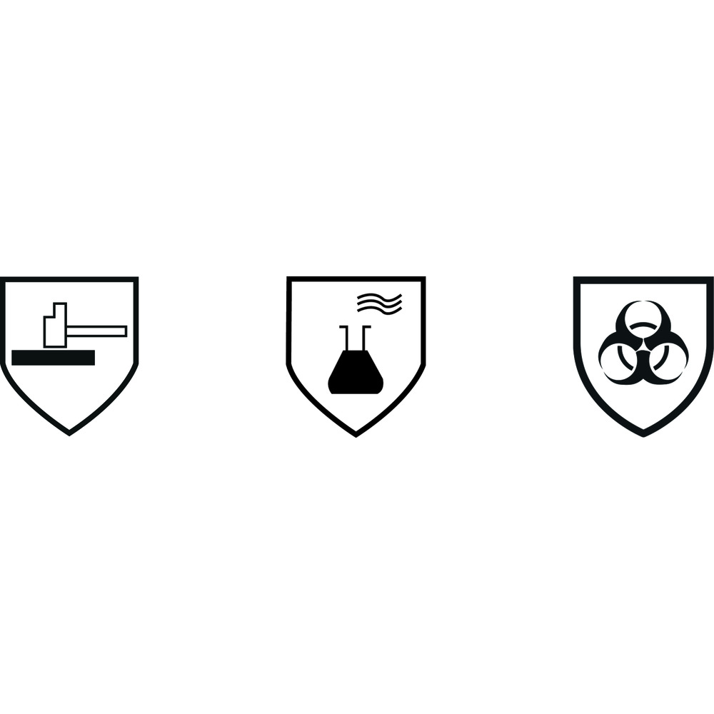 • ochrana proti mechanickému nebezpečí podle DIN EN 388, proti bakteriologické kontaminaci podle DIN EN 374/2 a proti chemickému nebezpečí podle DIN EN 374/3