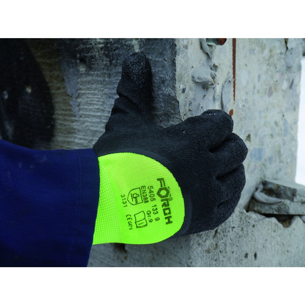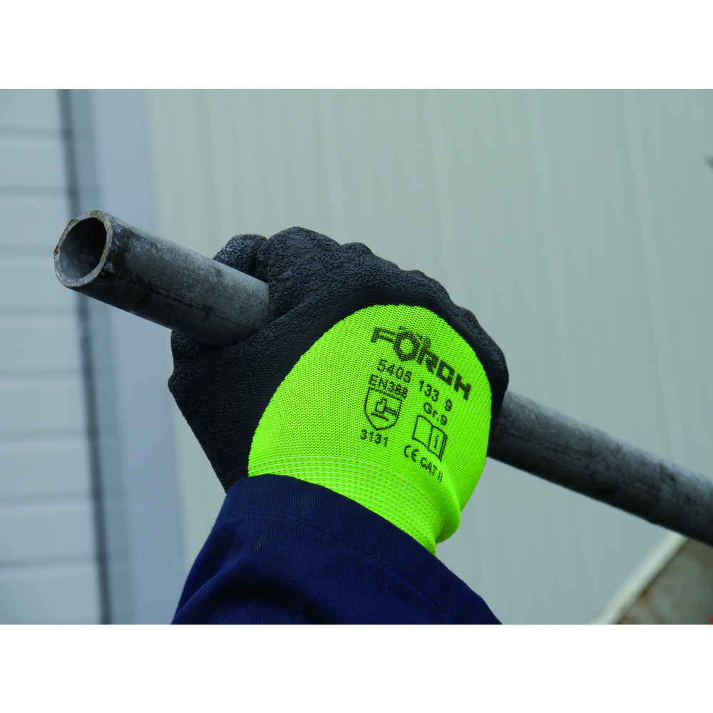 Rukavice z jemného úpletu, částečně potaž. latexem