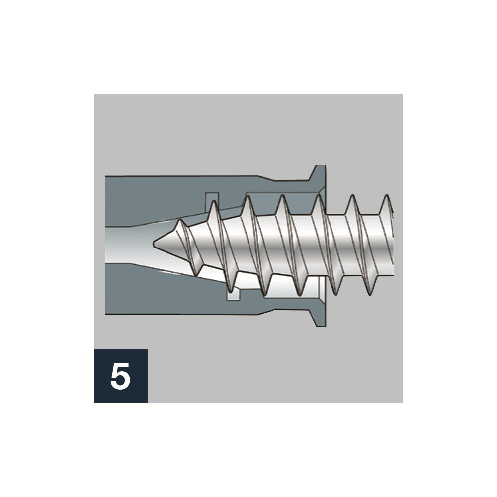 • pružný golier hmoždinky zabraňuje jej zapadnutiu do hlbokých otvorov, ale v prípade potreby umožňuje zarazenie vrutu (montáž prestrčením – obrázok 3)