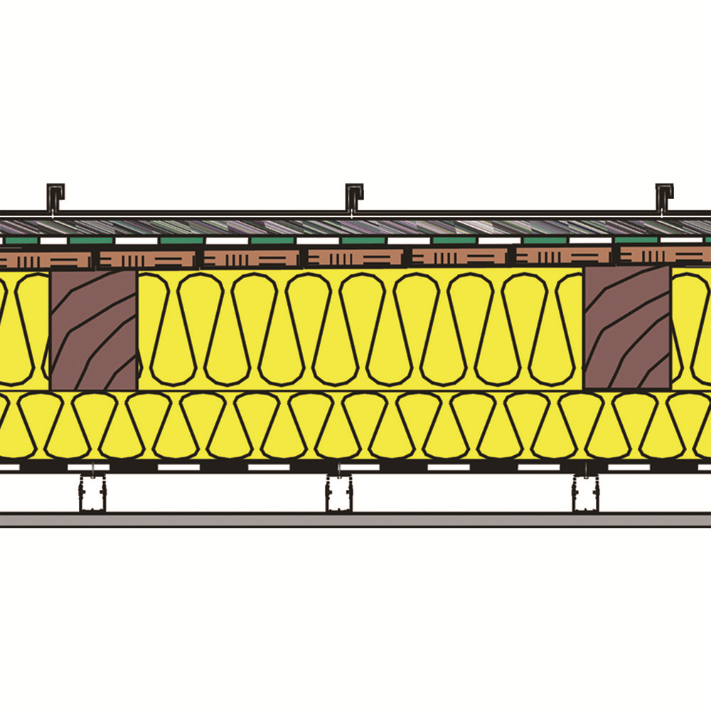 • pri plechovej krytine so stojatou drážkou spĺňa požiadavky podľa DIN 4102-7 pre vetrané a nevetrané strechy v kombinácii s minerálnou izoláciou na šikmej časti strechy