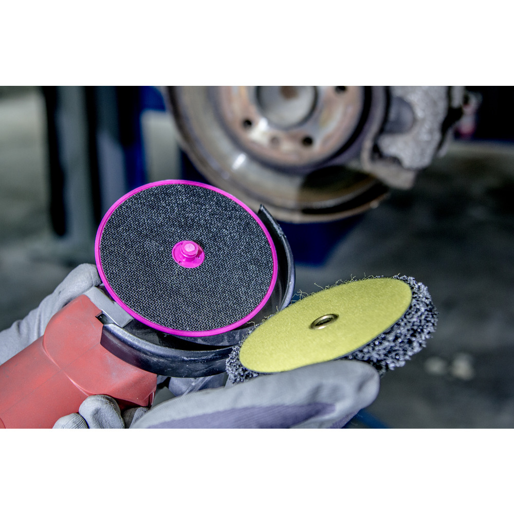• celoplošné čistenie a brúsenie je umožnené vďaka opornému tanieru pripevnenému suchým zipsom