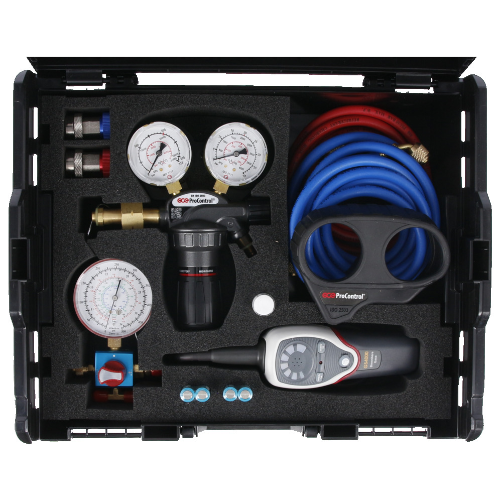 • Láhev s kontrolním plynem (dusíkem nebo formovacím plynem) nemusí zůstat u vozidla a lze ji od naplněné klimatizace odpojit. To umožňuje další práci na dalších vozidlech při současné kontrole ztráty tlaku u prvního vozidla.