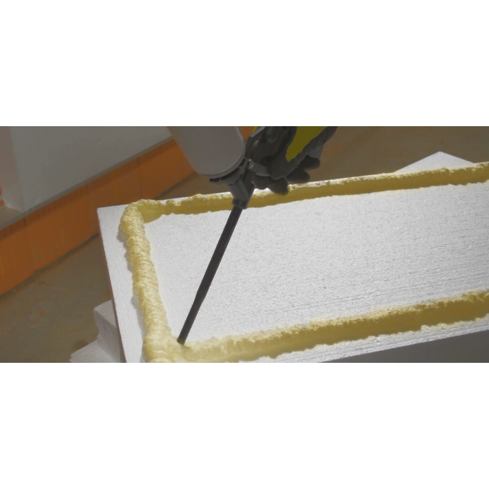 • jednozložková polyuretánová pena, ktorá tvrdne pri kontakte so vzdušnou vlhkosťou - na racionálne, čisté, úsporné a trvalo bezpečné lepenie tepelnoizolačných dosiek (EPS) na fasádu