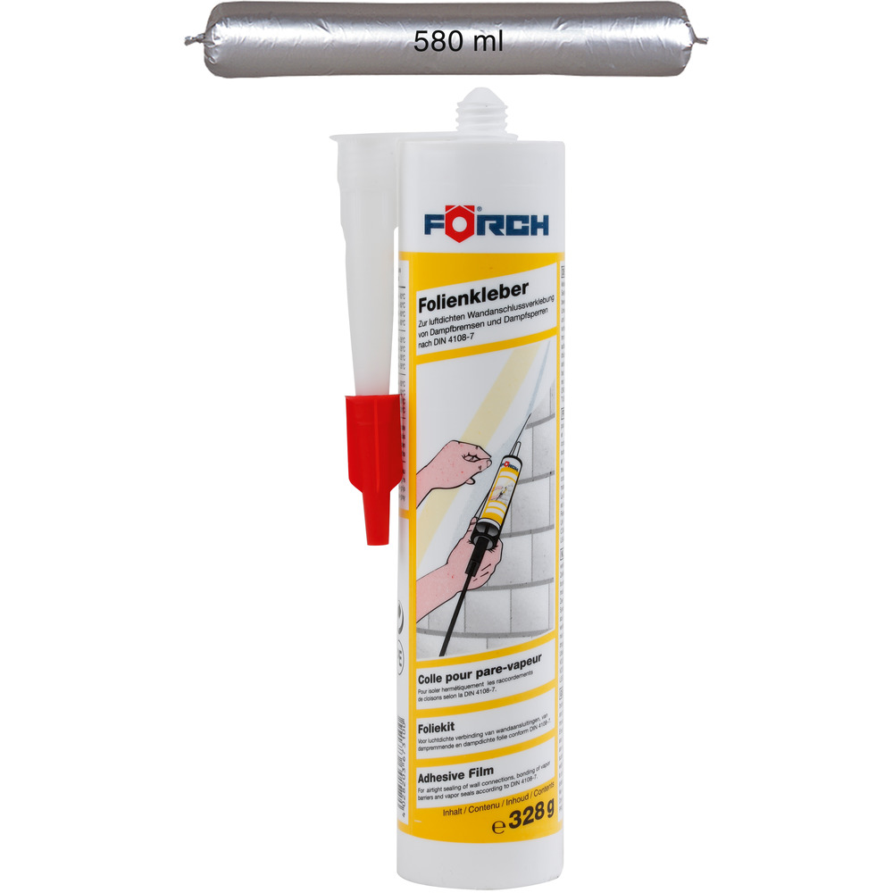 • špeciálne tesniace lepidlo na trvalé vzduchotesné spojenie parotesných fólií (parozábran a parobŕzd) podľa normy DIN 4108-7