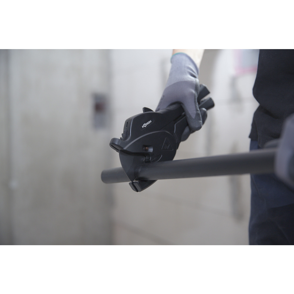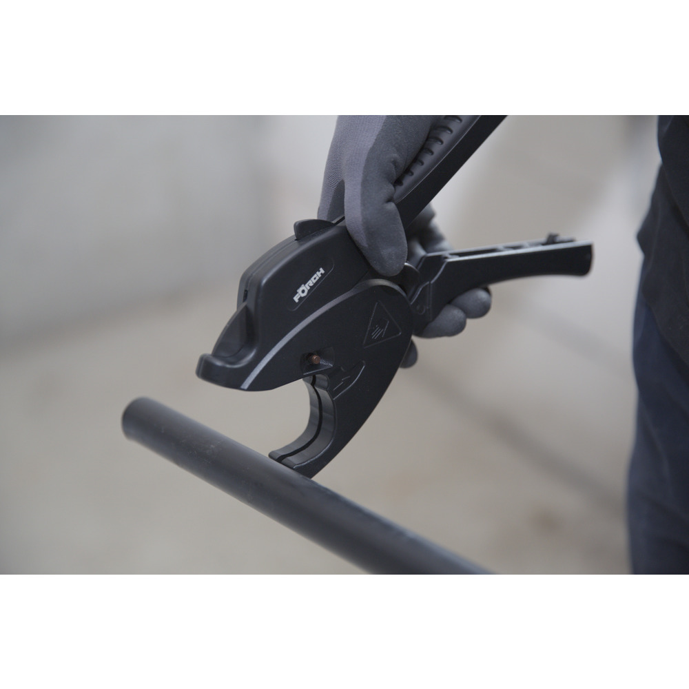 • díky progresivnímu posuvu čepele vedenému pomocí ozubení snadné, rychlé a precizní řezání plastových a sendvičových trubek jednou rukou
