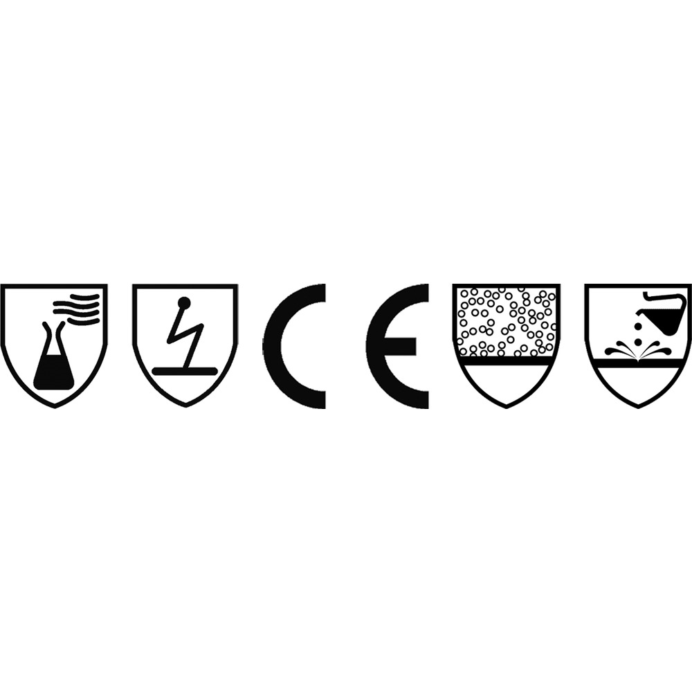 • podle evropské normy pro osobní ochranné pracovní prostředky (OOPP) na ochranu proti chemikáliím podle CE 0561, kategorie III