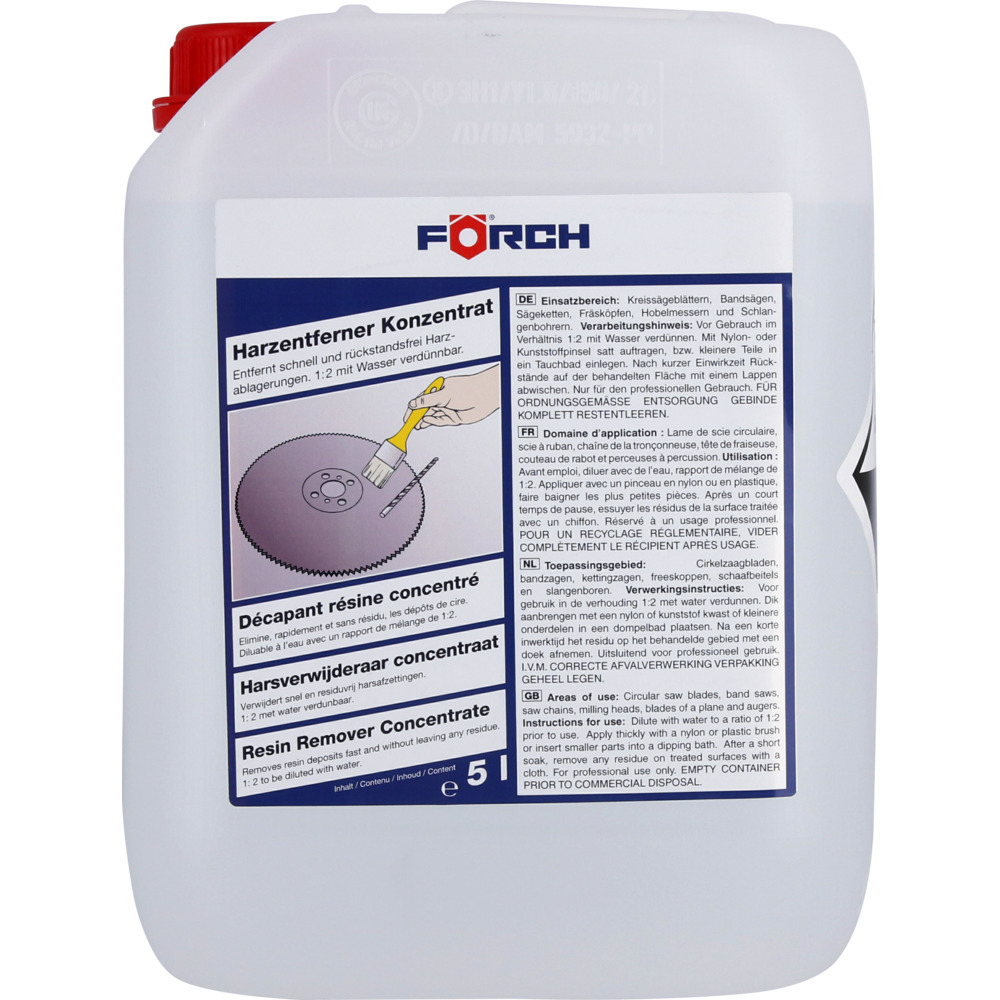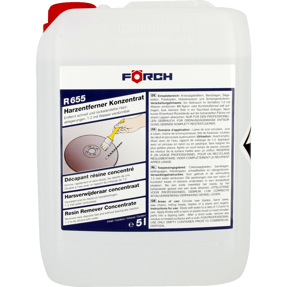 • rychle a beze zbytku odstraňuje usazenou pryskyřici z kruhových, pásových a řetězových pil, frézovacích hlav, hoblovacích nožů, hadovitých vrtáků atd.