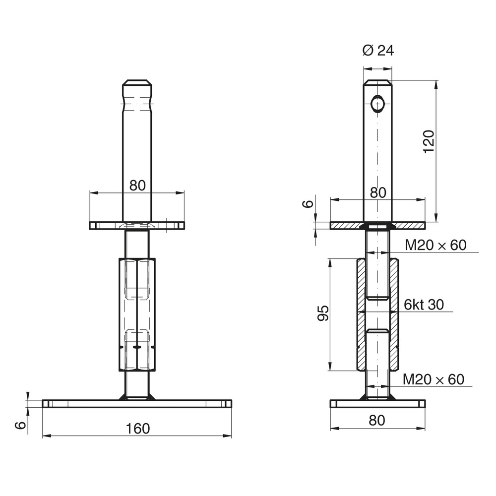 Pätka stĺpika, výškovo nastaviteľná, typ Z