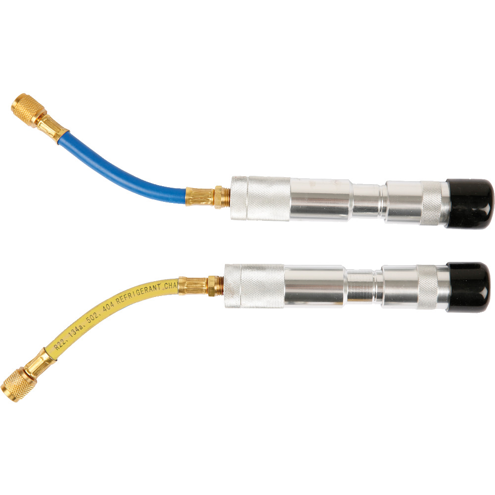 • Do injektoru se šroubovacím pístem a modrou hadičkou dávejte pouze UV aditivum POE pro hybridní vozidla a do injektoru se šroubovacím pístem a žlutou hadičkou pouze kompresorový olej POE (polyolester) pro hybridní vozidla. Tím se zabrání neúmyslnému smíchání/záměně.