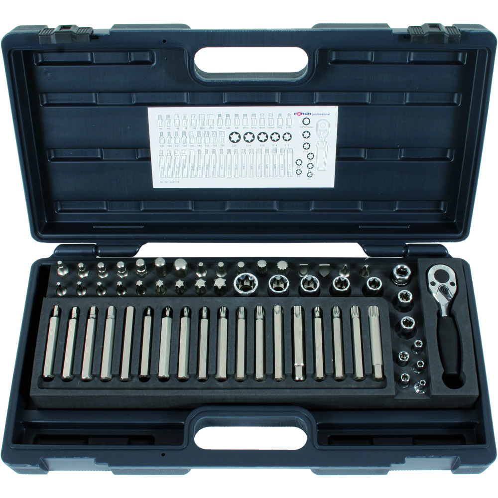 Sada bitů a nástrčných klíčů Profi, 10 mm, 57dílná