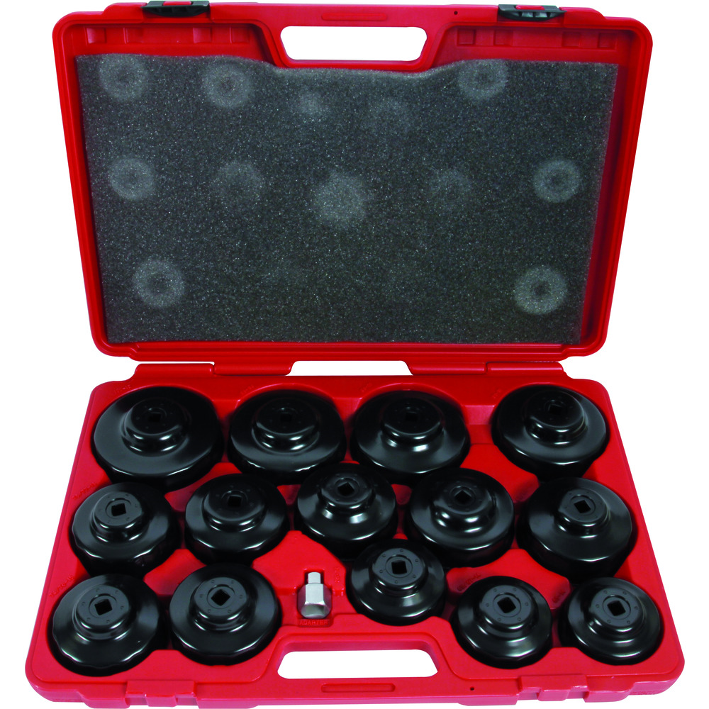 • 15dílná sada klíčů na olejové filtry, pro profilované filtrační vložky, v kufru