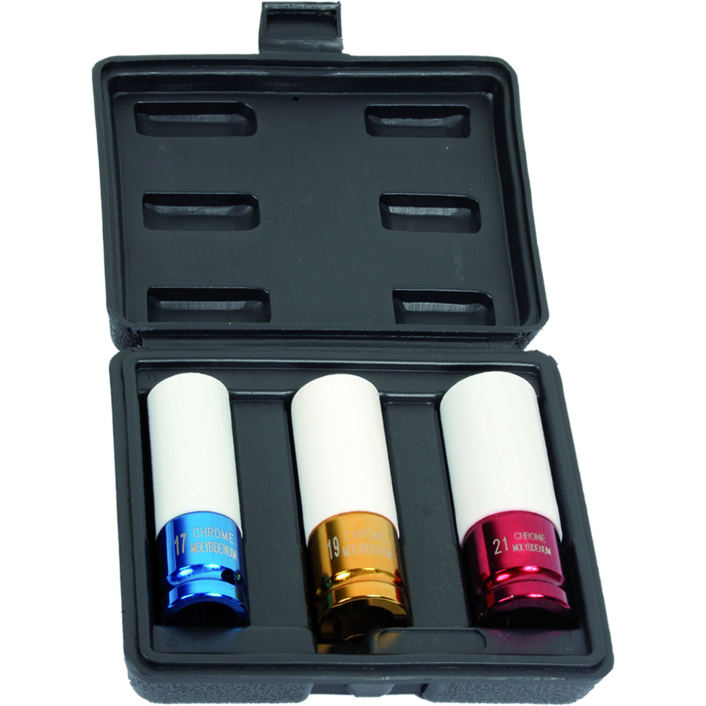 • nástrčné klíče 1/2" s plastovým opláštěním, k bezpečné montáži a demontáži hliníkových ráfků, aniž by se ráfky poškodily
