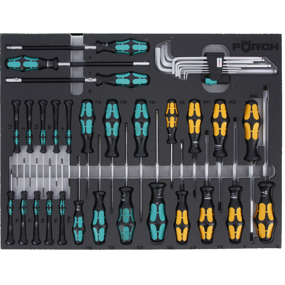 • 37dílná sada nářadí ve vložce z měkké pěnové hmoty, číslo výr. 9026 517 29
