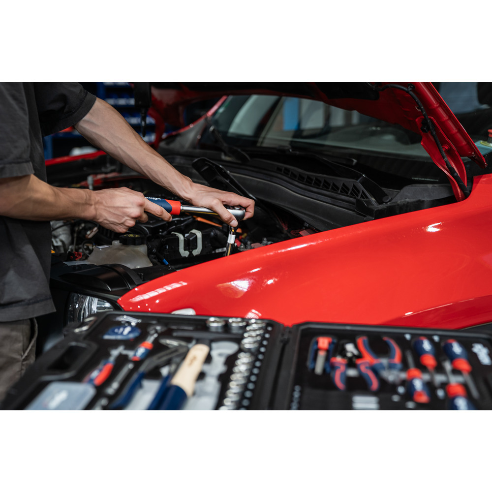 • s vložkou z kombinovanej penovej hmoty (tvrdá/mäkká) na bezpečné uloženie, zabraňuje vypadnutiu náradia pri otvorení kufra