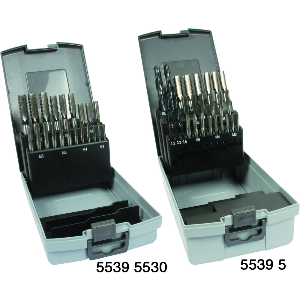 • vždy 3 ruční závitníky DIN 352 HSS, metrické
