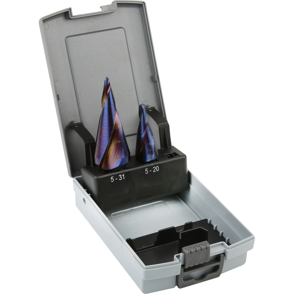 • vždy po 1 kuse: stupňovitý vrták HSS MULTI-TT Ø 5 – 20 / 5 – 31 mm