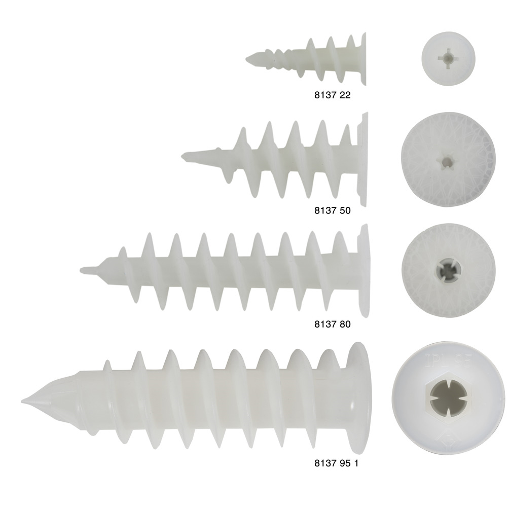 • zatepľovacie systémy, polystyrénové dosky (EPS, XPS), dosky z tvrdenej penovej hmoty, styroporové dosky, dosky Heraklith (odolné voči tlaku), drevovláknité izolačné dosky s predvŕtaním s Ø 13 mm u IPL95