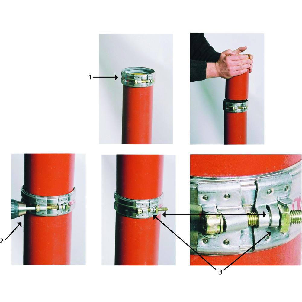 • na koniec rúrky alebo tvarovky nasuňte kompletnú spojovaciu objímku (1) až po stredný distančný krúžok tesnenia