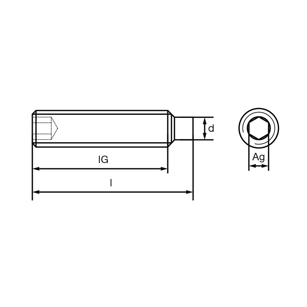 Stavacie skrutky s vnútor. 6-hr. DIN 915 45H, nepot. oceľ
