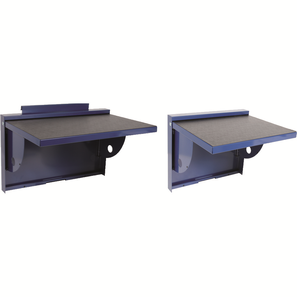 • úzký sklápěcí stolek k dílenskému vozíku, číslo výr. 4990 861 je při montáži na zadní stěnu v přiklopeném stavu v jedné rovině se stěnou vozíku