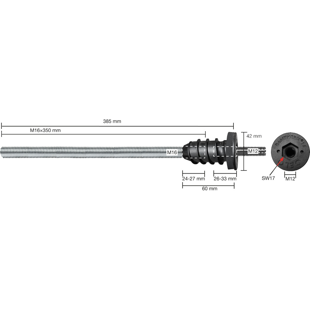 • Thermo-FIT 16: 4 obalové jednotky: vždy 4× Thermo-FIT pozink./A4, závitový kolík M12 × 70 mm A4, podložky A4, matice M12 A4, sitka SH 20 × 85 mm, 1× predĺženie miešacej trysky a 1× bit, vnútorný šesťhran, veľkosť 6
