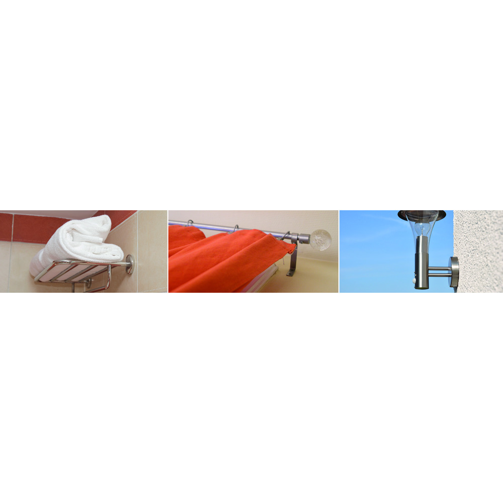 • ideálne na ukotvenie napr. záclonových koľajničiek, háčikov na šaty, svietidiel, držiakov na uteráky, ľahkých nástenných políc, držiakov sprchy atď.