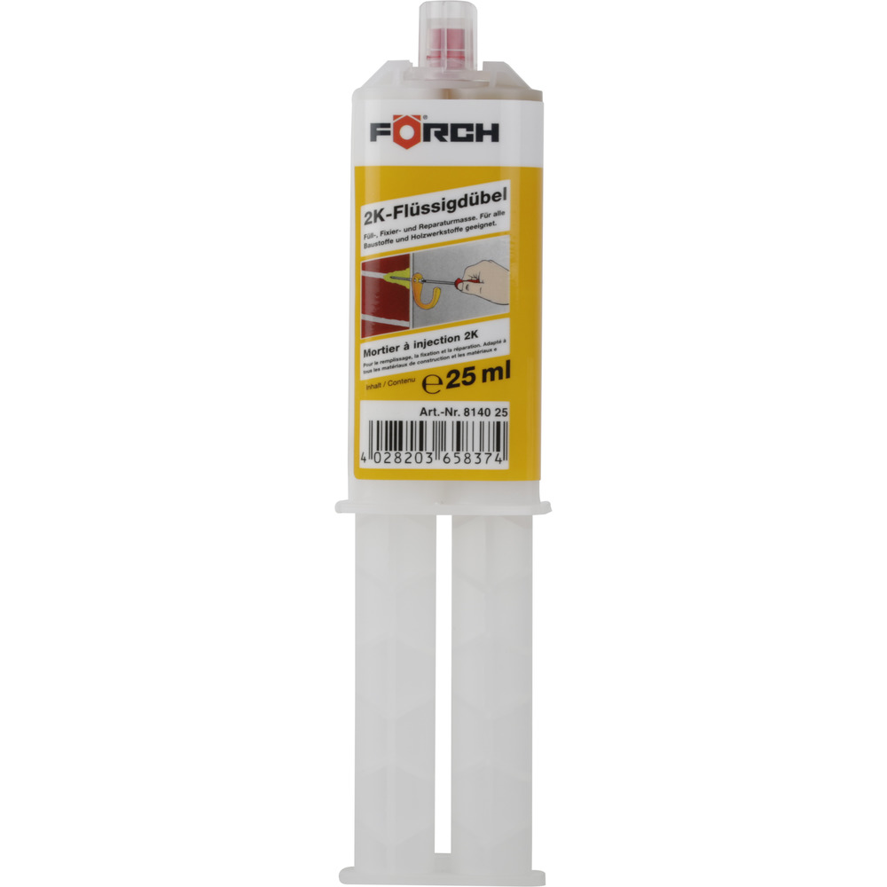 1x tekutá hmoždinka 25 ml, 2x miešacia tryska, 2x injektážne sito, 2x predĺženie