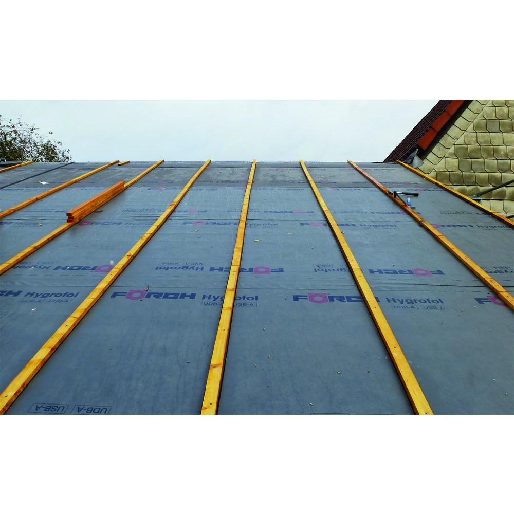• obojstranná lepiaca páska na klince kontralát na "utesnenie proti dažďovej vode" medzi podstrešnými fóliami FÖRCH a kontralatami podľa pravidiel ZVDH* (= Ústredný zväz nemeckých pokrývačov)