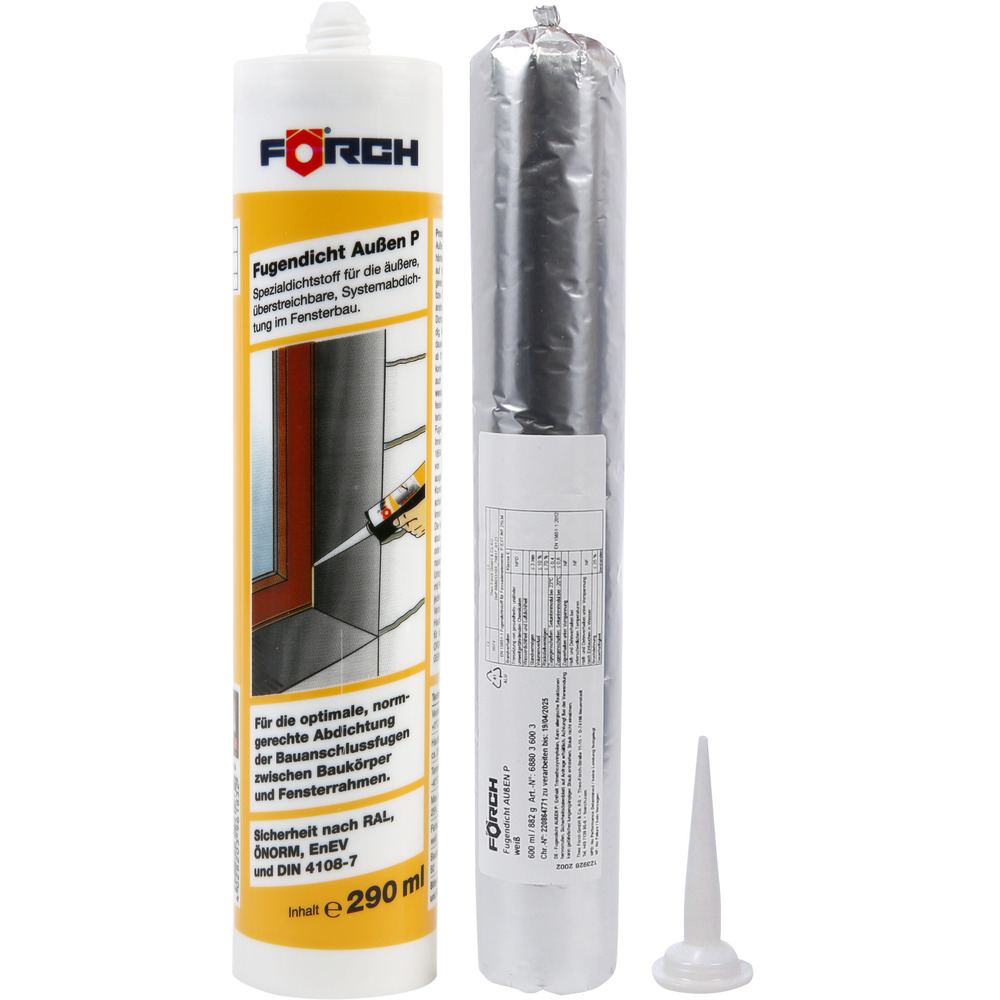 • Tesniaci tmel do škár, vonkajší P je vysokokvalitný, mäkký elastický tmel na hybridnej báze, neutrálne vytvrdzujúci, určený na štandardizované tesnenie okien v exteriéri podľa RAL, resp. ÖNORM