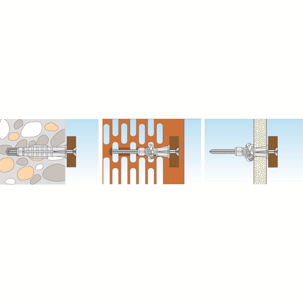 • univerzálne hmoždinky pre takmer všetky stavebné materiály