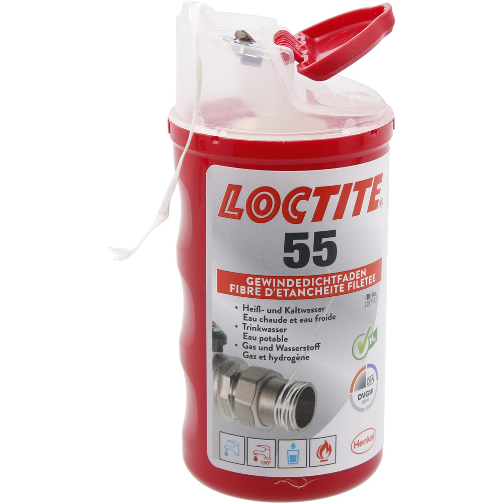 • plyn a vodu: Loctite 55 má certifikát DVGW (registr. č. DV-5142AUO 166) a bolo testované podľa EN 751-2 (trieda ARp) a DIN 30660