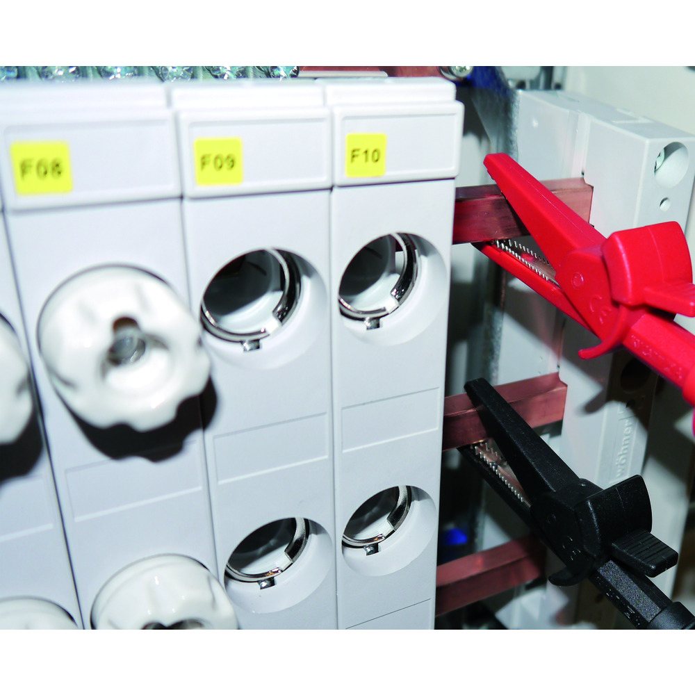 • celoizolované krokosvorky 30 A se speciálně tvarovanými svěracími čelistmi 22 mm pro bezpečné kontaktování od velkých průřezů po jemné dráty