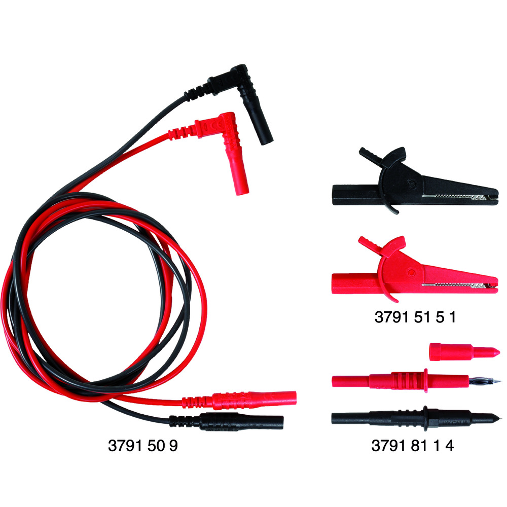 • robustní poniklované zkušební hroty s pružnou krytkou pro bezpečné kontaktování v otvorech 4 mm