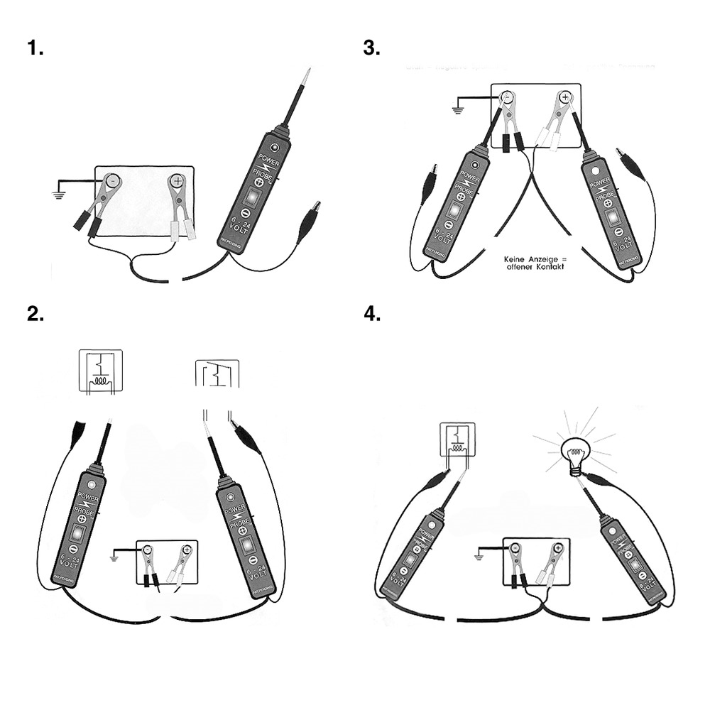 • rychlé testování elektrických systémů ve vozidle, není třeba hledat připojení na kostru
